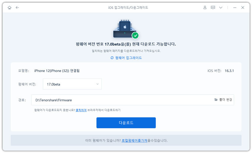 - ReiBoot는 iOS 버전을 자동으로 감지하고 업그레이드 가능한 iOS 펌웨어를 표시합니다. 패키지를 받으려면 "다운로드"를 클릭하십시오.