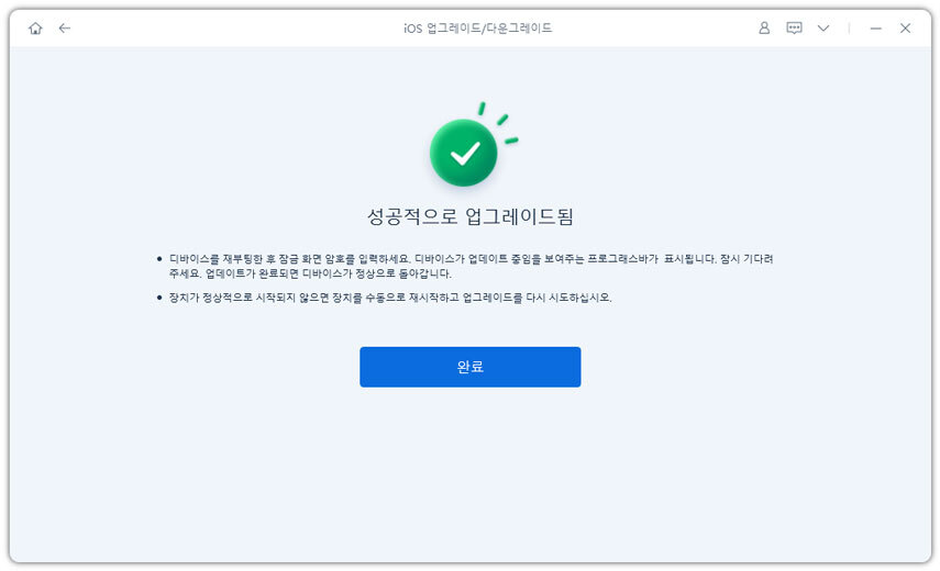 - 업그레이드가 완료되면 완료된 페이지가 표시되고 장치가 최신 버전이 됩니다.