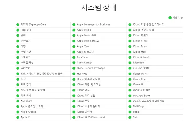 ▶ 여기를 클릭하여 Apple의 공식 시스템 상태 페이지를 방문하세요.