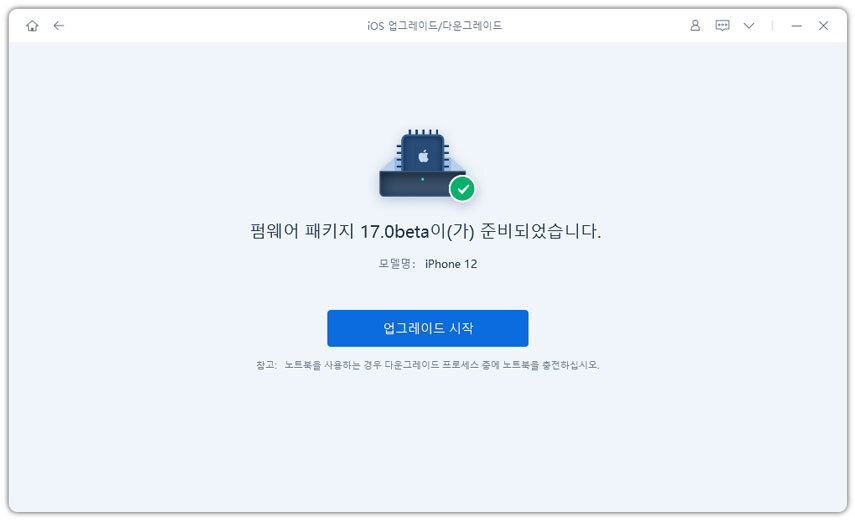 - 펌웨어 패키지가 다운로드 되면, “일반 복구 시작” 버튼을 눌러 복구를 시작해주세요. 그러면 프로그램이 몇 초 이내로 iOS 관련 모든 이슈를 아이폰에서 제거할 겁니다.