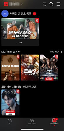 넷플릭스 앱 접속> 하단의 저장한 콘텐츠 목록 클릭> 저장해둔 영상 오프라인 시청하기