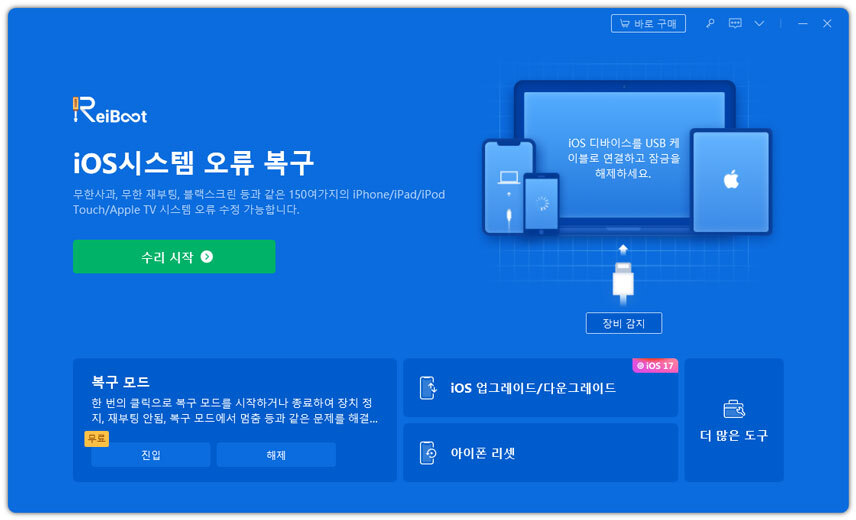 Tenorshare ReiBoot(테너쉐어 레이부트)는 일반 복구 기능을 갖춘 최고의 솔루션을 제공합니다.