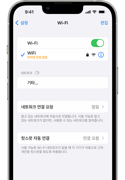 일단 와이파이 설정부터 확인해줍니다. 업데이트 후 와이파이가 설정 초기화 되어 다시 설정해야 될 수 있기 때문입니다.