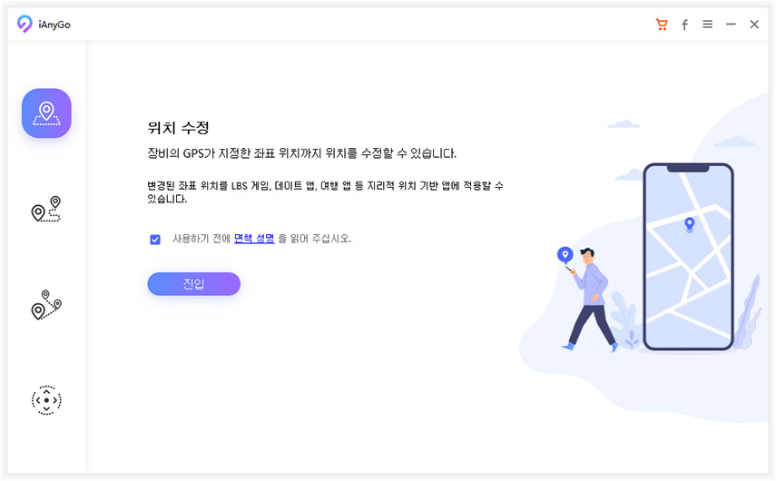1. 컴퓨터에서 Tenorshare iAnyGo 프로그램을 실행합니다. 기본 모드는 '위치 수정'입니다.