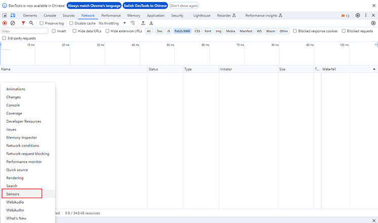 이제 개발자 도구에서 위치를 변경해볼텐데요. 개발자 도구 메뉴에서 Sensors 탭을 찾아줍니다. 탭이 보이지 않을 경우 좌측 상단의 >> 아이콘을 클릭하면 더 많은 탭을 찾아볼 수 있습니다. 그리고 Geolocation 섹션에서 Custom location 체크박스를 체크하고 새로운 위치의 위도와 경도를 입력합니다. 그러면 선택한 웹사이트를 해당 위치 정보를 기반으로 사용할 수 있습니다.