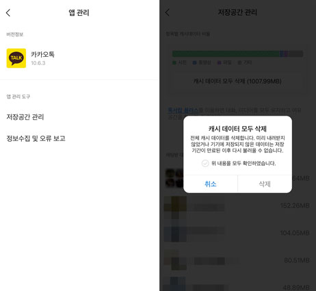 앱의 캐시를 삭제하면 불필요한 데이터가 제거될 뿐만 아니라 앱 성능이 개선될 수 있기 때문에 앱 캐시는 주기적으로 삭제하는 것이 좋습니다. 카카오톡 페이스톡 화면 오류나, 카톡 페이스톡 안됨과 같은 문제가 발생했다면 앱 캐시 삭제를 한 뒤 한번 더 확인해 보세요.