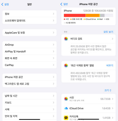 설정> iPhone 저장 공간> 저장 공간 확인 후 불필요한 앱 정리하기
