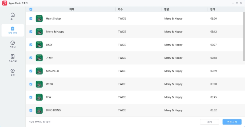 - 작업센터에서 변환할 음악을 선택하고 “변환 시작”을 클릭하세요.