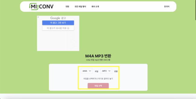 MiConv 는 문서 변환, 스프레드시트 변환 등이 가능한 사이트인데 여기에서 역시 m4a mp3 변환과 mp3 m4a 변환을 지원해주기 때문에 이를 통해서 진행할 수도 있습니다.