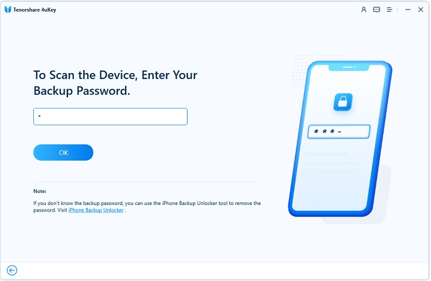 3. 비밀번호 스캔 시작을 클릭하고 백업 비밀번호를 입력합니다. 백업 비밀번호가 없는 경우 프로그램은 "a"를 임시 비밀번호로 사용합니다.