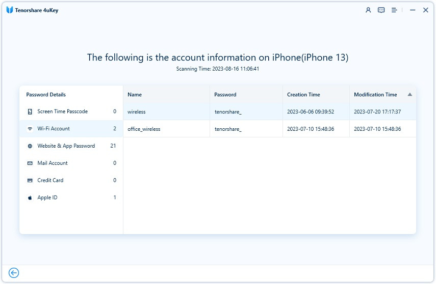 기기에서 애플 ID 비밀번호를 확인하려면 Tenorshare 4uKey의 "암호 관리" 기능을 사용할 수 있습니다.