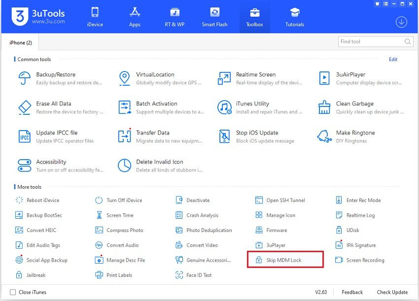3uTools로 mdm을 우회하려면 다음 지침을 따르세요.