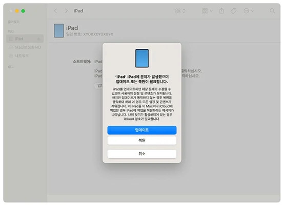 2. 그 다음, 아이패드 초기화 버튼을 눌러 복구 모드로 진입합니다.