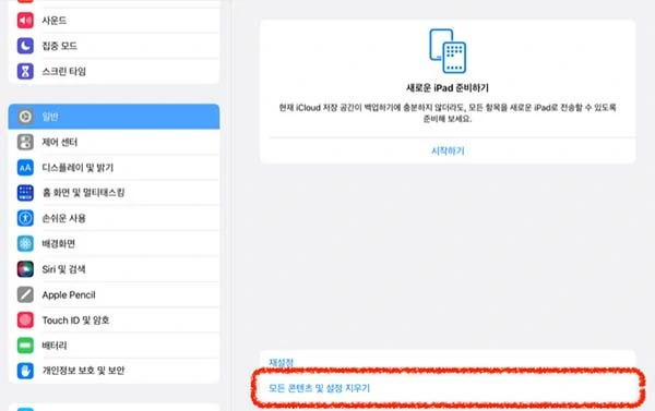 방법 3. 기기 설정에서 아이패드 공장 초기화 계정 삭제
