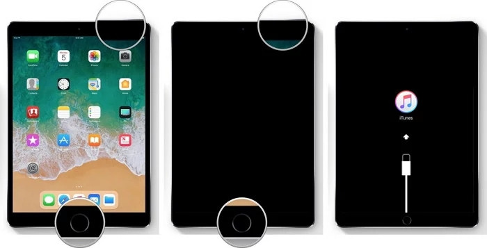 1. 먼저, iTunes를 열고 iPad를 컴퓨터에 연결해 주세요. 이제 '복구 모드'에서 iPad를 강제로 재시작해야 합니다. 방법은 '잠자기/깨우기' 버튼과 '홈' 버튼을 동시에 눌러 화면에 'iTunes에 연결' 문구가 뜰 때까지 기다리는 거예요.