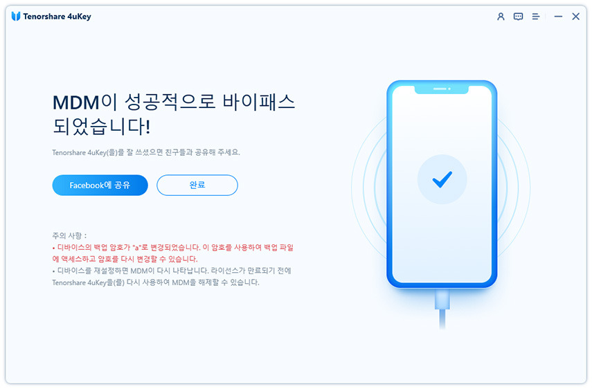 MDM 잠금이 있는 학교 iPad를 사용하고 있다면, Tenorshare 4uKey를 사용하여 MDM을 우회한 후 소셜 미디어와 기타 제한을 해제할 수 있습니다.