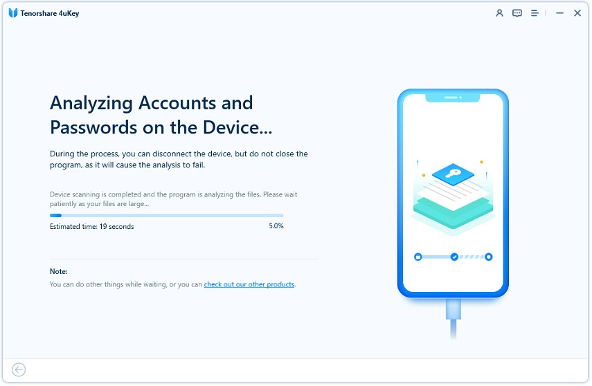 - 프로그램이 기기의 계정 및 비밀번호를 스캔하고 분석할 때까지 기다립니다.