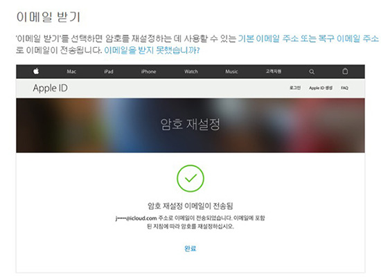 - 화면의 지침에 따라 애플 아이디 비밀번호를 재설정합니다.