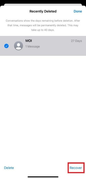 - 복구하려는 대화를 선택하고 복구를 클릭합니다.