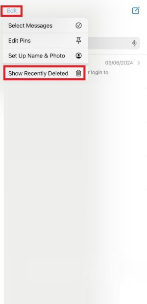 - 왼쪽 상단에서 편집을 클릭하고 최근 삭제된 항목 보기를 선택합니다.