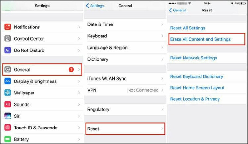 - 설정 > 일반 > 초기화 > 모든 콘텐츠 및 설정 지우기로 이동하여 아이폰을 초기화합니다.