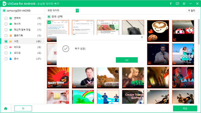 - 스캔이 완료되면 삭제된 데이터를 포함하여 장치의 모든 데이터가 표시됩니다. 복구하기 전에 데이터들을 미리 볼 수 있습니다.