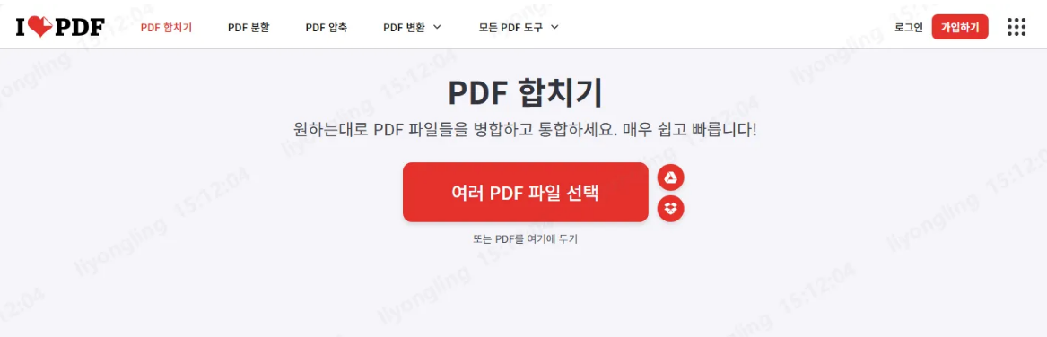 iLovePDF는 인터페이스가 깔끔하고, 병합·분할·압축 등 다양한 기능을 지원합니다.