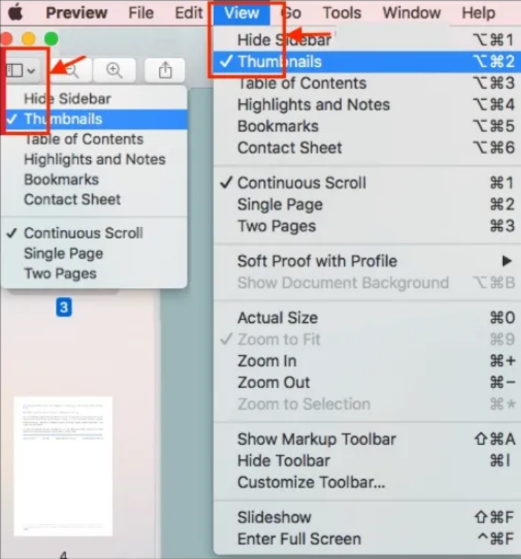 - ‘보기’ → ‘축소판’으로 사이드바 표시
