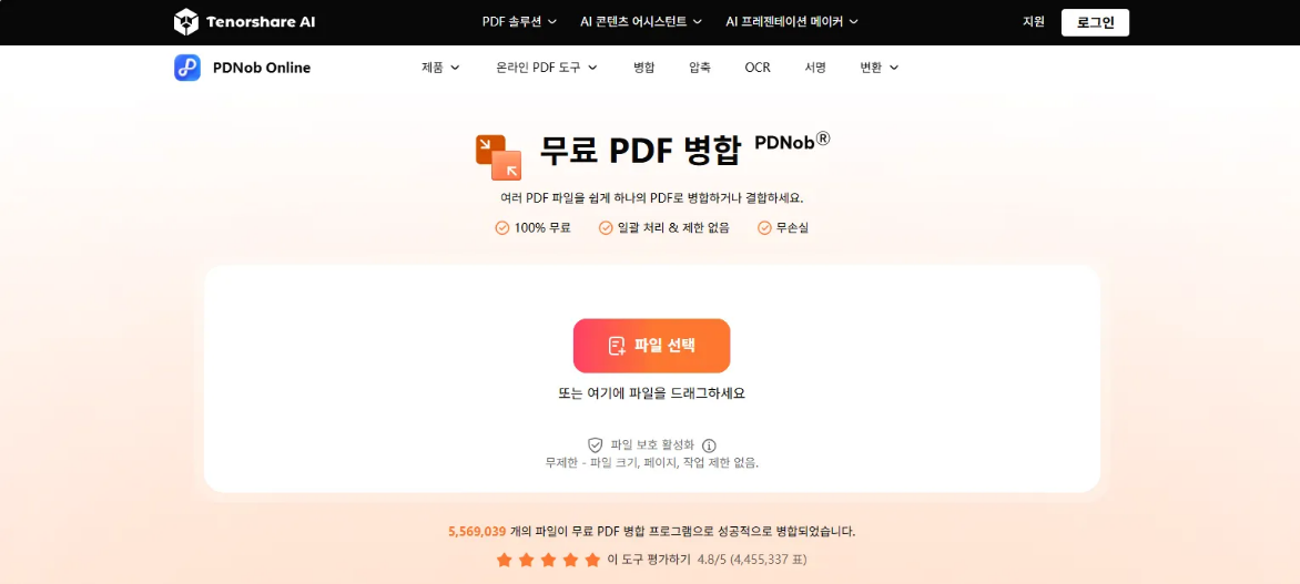 Tenorshare PDNob는 단순 병합을 넘어 OCR 지원으로 스캔 파일도 편집 가능한 PDF로 변환합니다. 사용법도 직관적이며, 평생 라이선스 구매로 가성비가 뛰어납니다.