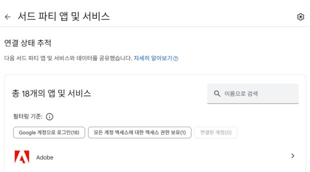 - '제3자 앱 액세스' 항목 선택 > 연동된 앱 목록 확인