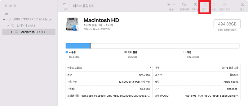 방법1: '디스크 유틸리티'를 사용해 모든 데이터를 완전히 삭제하기