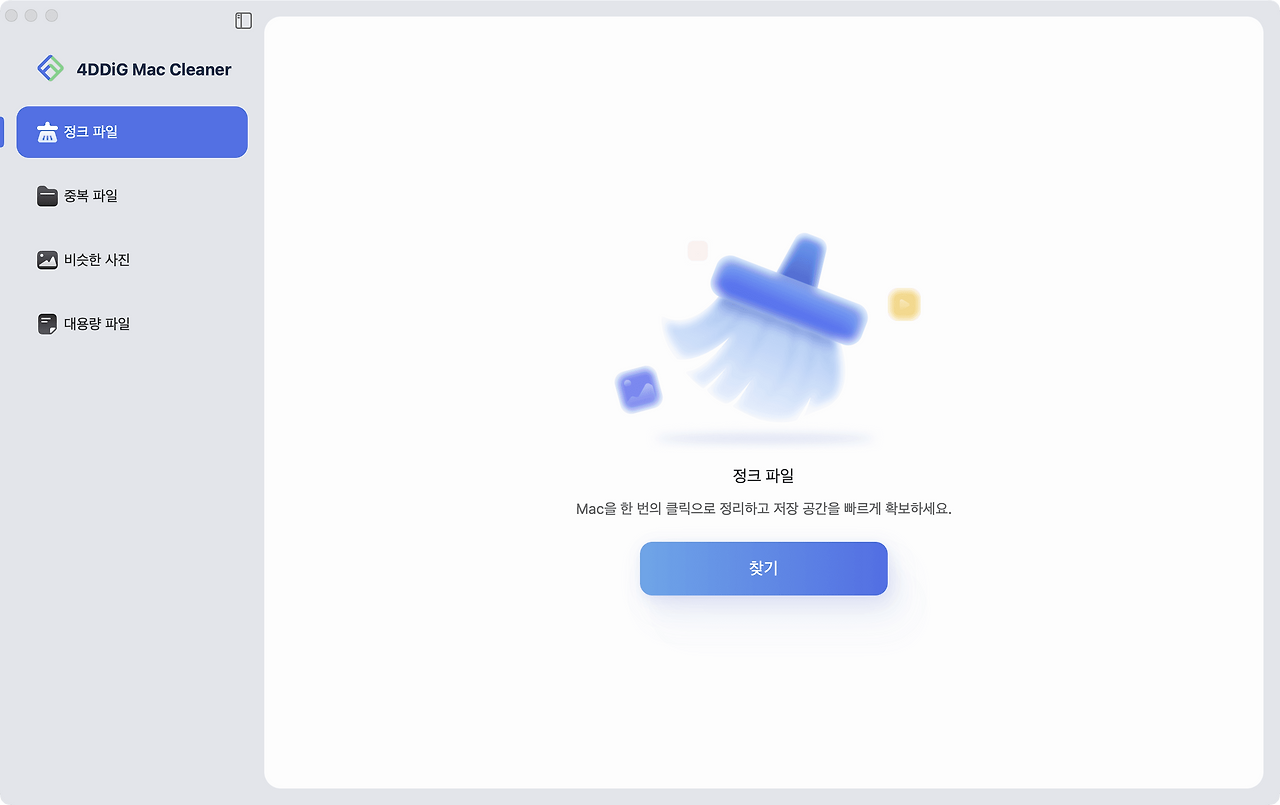 2. 왼쪽 메뉴에서 ‘정크 파일’ 항목을 선택한 후, [찾기] 버튼을 클릭하여 스캔을 시작하세요. 단 몇 분 안에 Mac에 쌓인 불필요한 정크 파일을 빠르게 분석합니다.