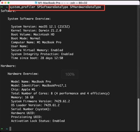 4. 다음을 사용해 시스템 메모리 정보 를 얻습니다: system_profiler SPHardwareDataType | grep Memory .