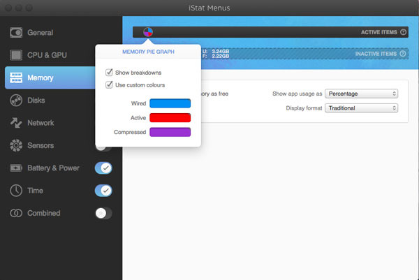 2. iStat Menus를 열고 "일반" 섹션으로 이동한 다음 "메모리" 옵션을 켜서 메뉴 막대에 RAM 통계를 표시합니다.