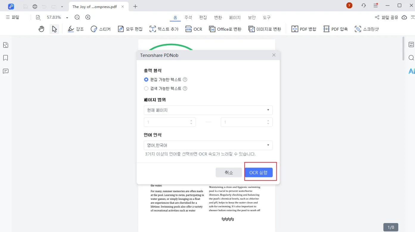 필요하다면 특정 페이지만 선택해 pdf ocr 변환을 진행할 수도 있고,