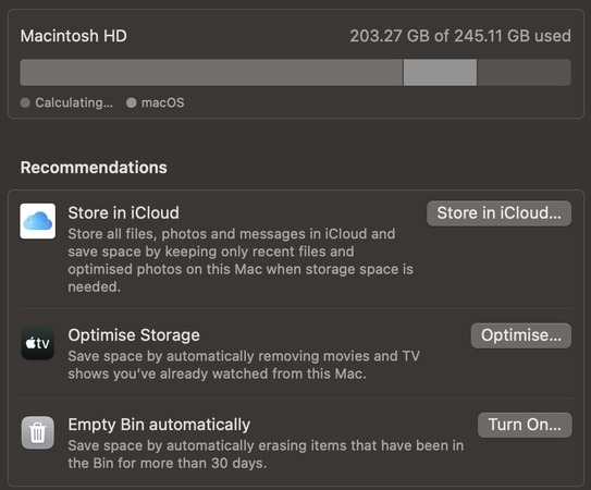 - macOS가 저장 공간 분포를 계산할 때까지 기다립니다.
