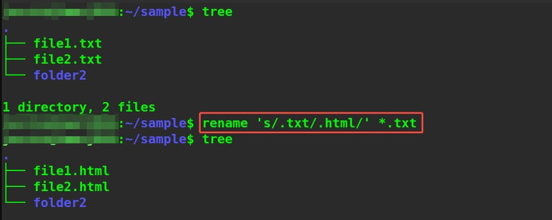 다음 명령어를 입력합니다. rename 's/.txt/.log/' *.txt