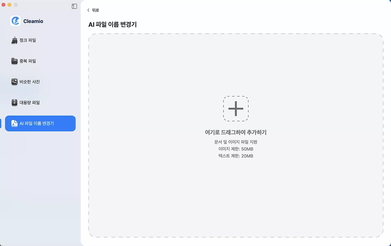2단계: "+" 아이콘을 눌러 이름을 변경하고 싶은 파일이나 폴더를 추가하거나, 드래그 앤 드롭으로 직접 추가합니다.