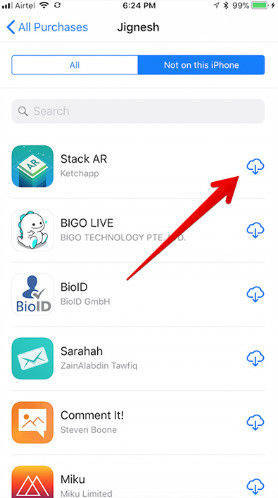 - 복원/다시 설치하려는 앱을 찾아 오른쪽에 있는 다운로드 화살표를 탭합니다.