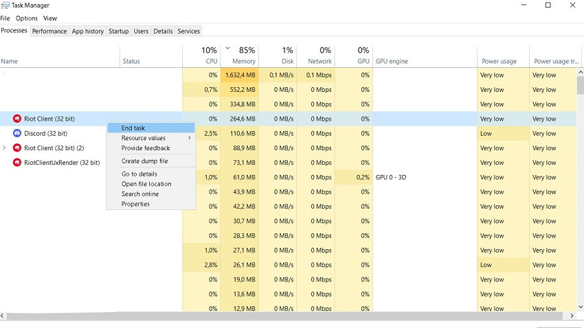 4단계: 필요하지 않은 프로그램(게임, 동영상 앱 또는 중복 브라우저 등)에 대해 오른쪽 클릭하고 "작업 끝내기"를 선택합니다.