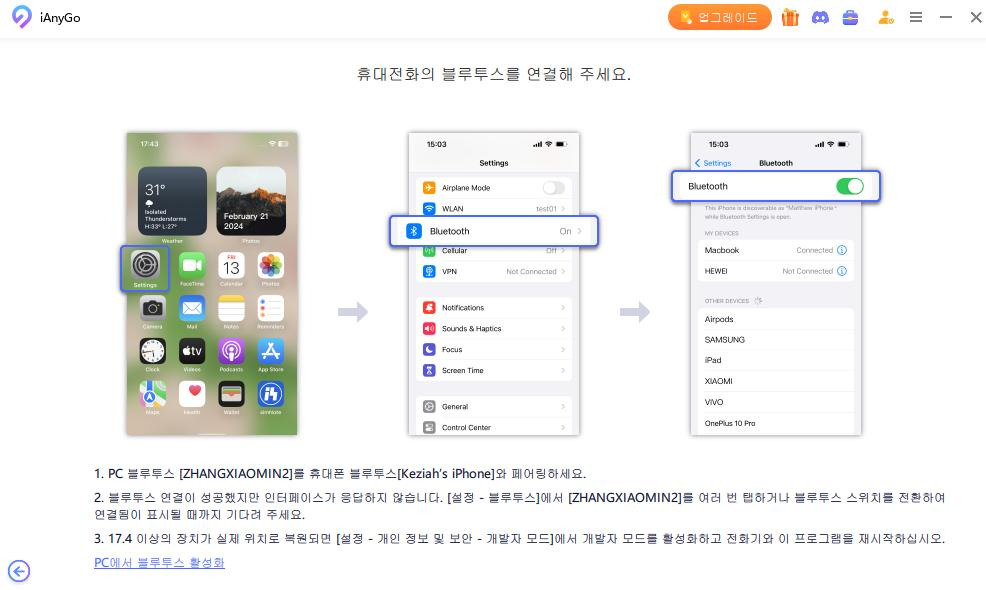 - 아이폰과 컴퓨터 모두에서 블루투스를 활성화하세요 .