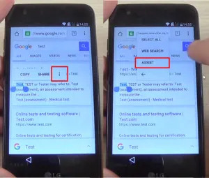 - 검색 결과에서 링크를 길게 누르면 점 3개로 된 ‘더보기’ 아이콘이 나타납니다. 여기서 ‘도움말(Assist)’ 옵션을 선택합니다.